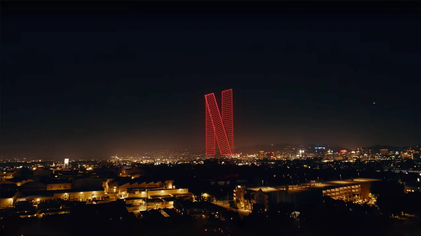 Netflix Is A Joke Fest 2024 kicked off its festivities with a visually stunning drone light show spectacular. This innovative campaign utilized hundreds of synchronized drones to create a dazzling display of light and animation across the night sky.