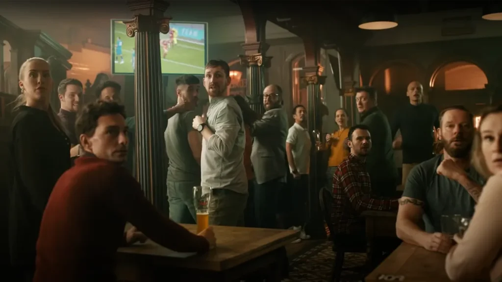 The ad features Klopp in a pub, instructing a bartender on the proper way to pour an ERDINGER. He humorously compares skimming the foam to eating fish and chips without the chips, highlighting the essential role of the foam in enhancing the taste and experience of the beer.