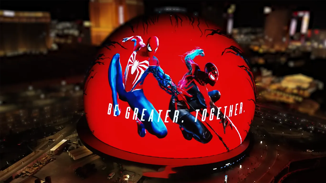 And step we do. As the web settles, the Sphere morphs into a breathtaking showcase of the game. Gameplay footage unfolds in stunning detail, the sheer scale of the projection amplifying every web-slinging maneuver, every punch and quip.
