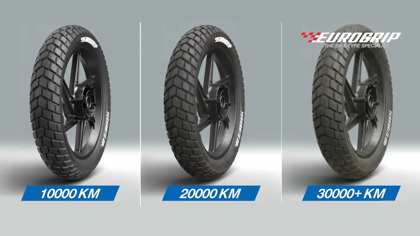 - Product/Focus: Eurogrip Tubeless Tyres, specifically highlighting TwinShield Technology (for durability and puncture resistance) and TreadSmart Technology (for grip that lasts thousands of kilometers).