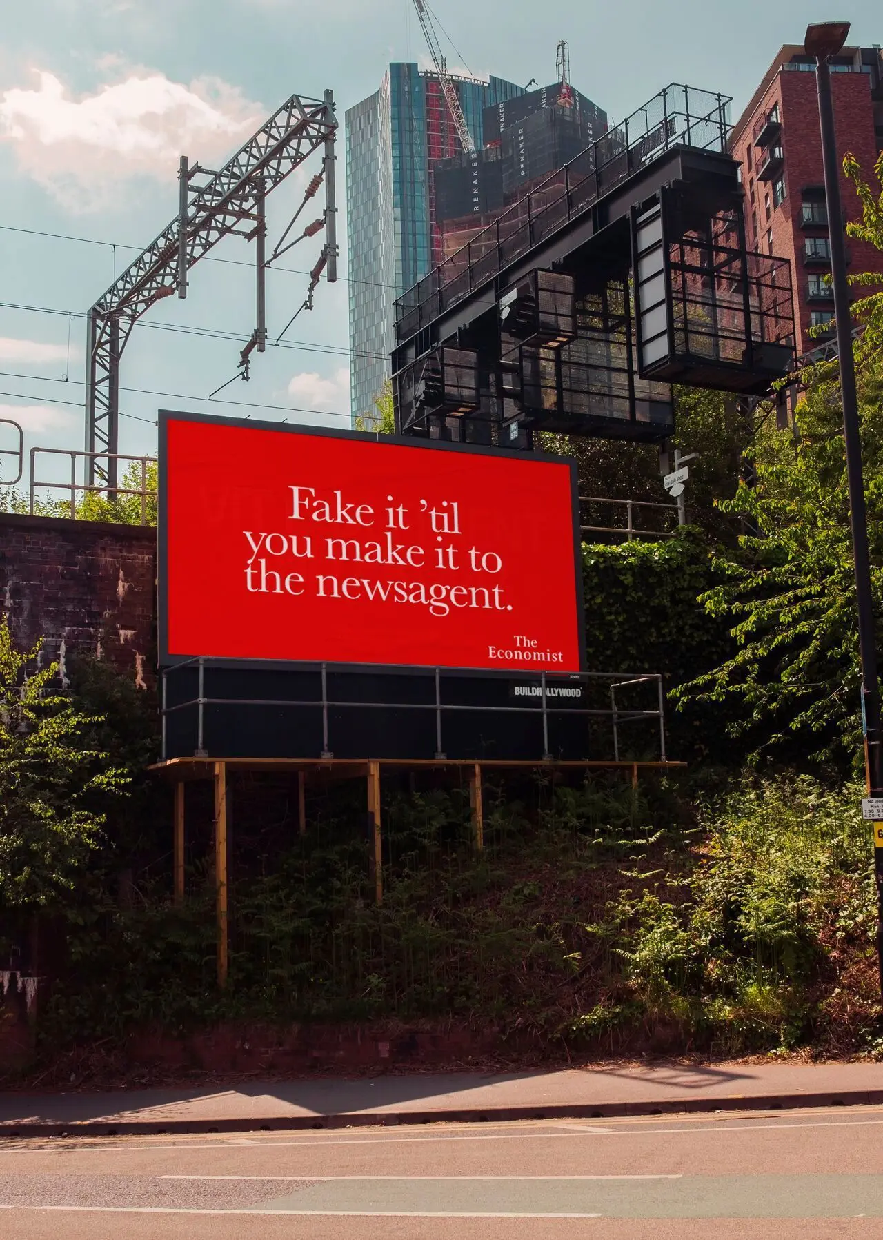 The Economist’s billboard campaign, which gained significant traction in June 2025, is a modern evolution of its classic 1980s “White out of Red” style. Featuring punchy, anonymous copy, the campaign aims to reassert the value of human intelligence in the age of generative AI.