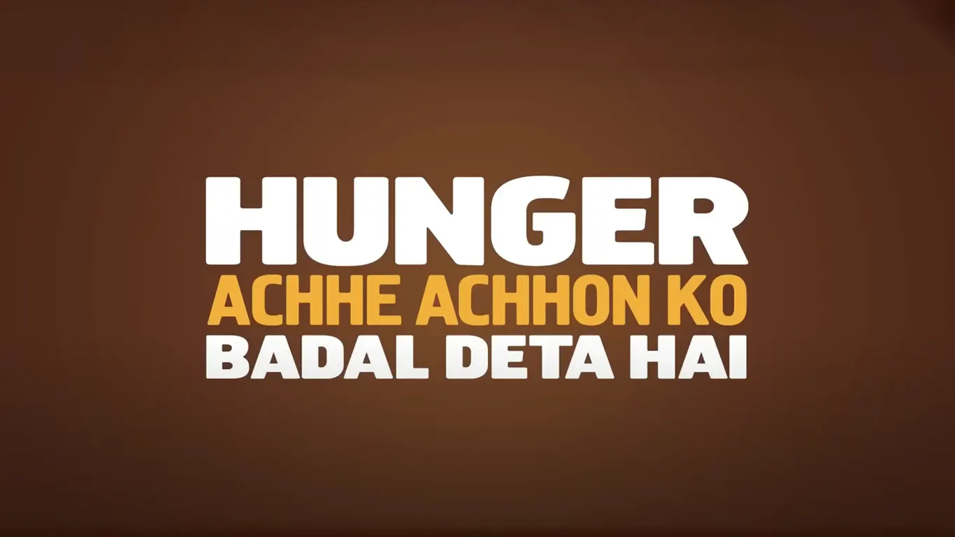 The ads humorously depict Dhoni, known for his composure, acting out of character due to hunger pangs.